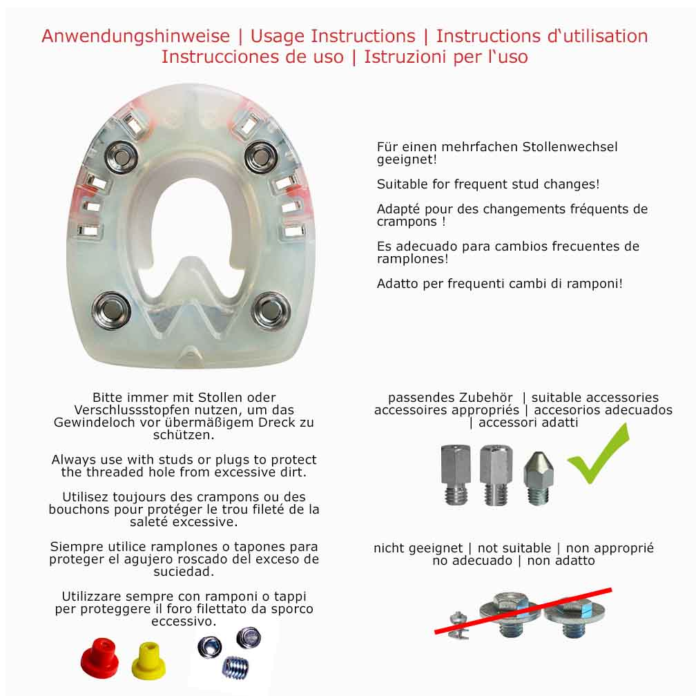 The stud holes in the 'Jumper' model are designed for easy screwing in and out of studs, allowing for quick removal after training or competition to preserve the show jumping horse's locomotor system. The hexagon studs and conical studs are to be used in this shoe.