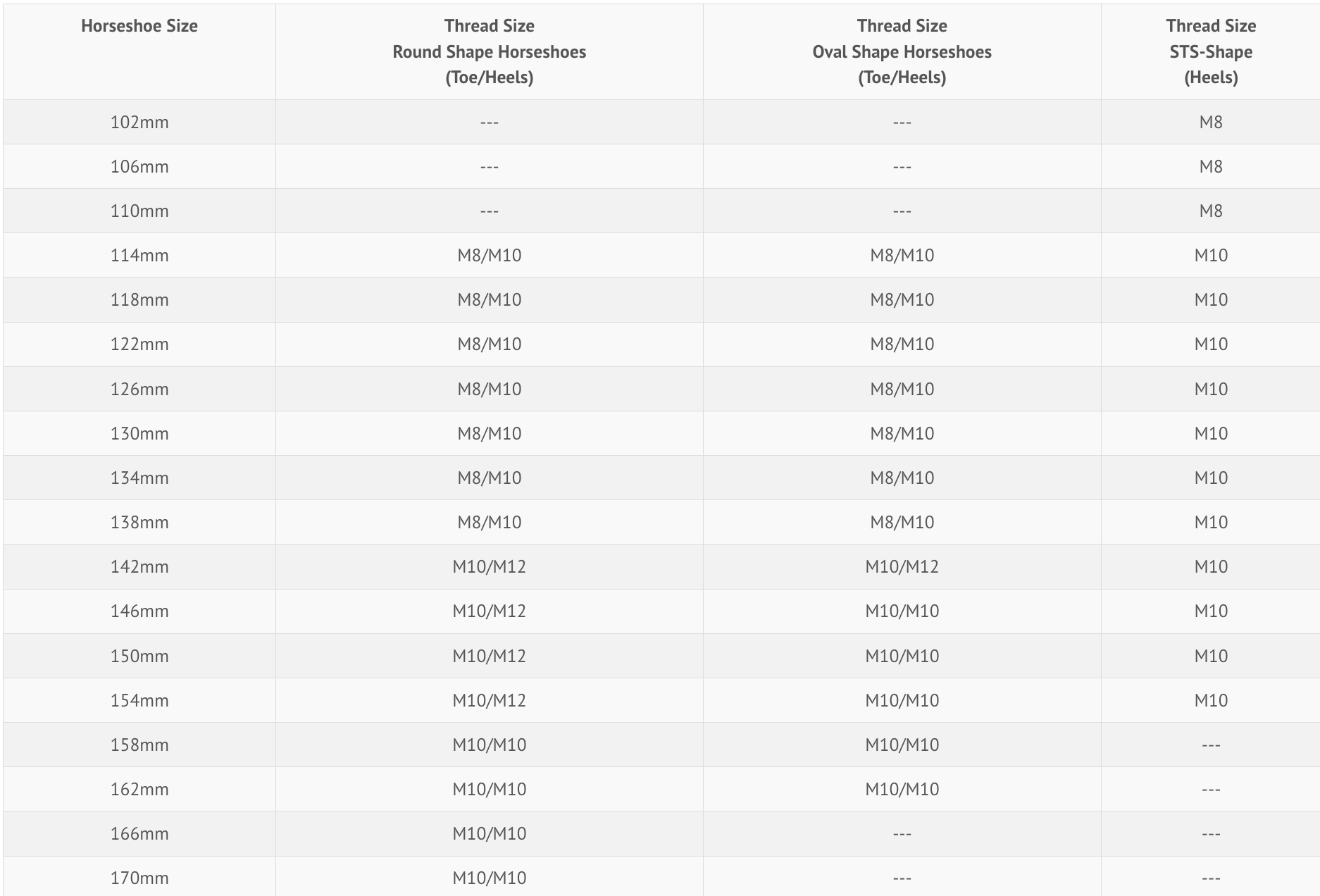 It is important to choose the correct size studs for the Jumper. Please refer to the chart below.