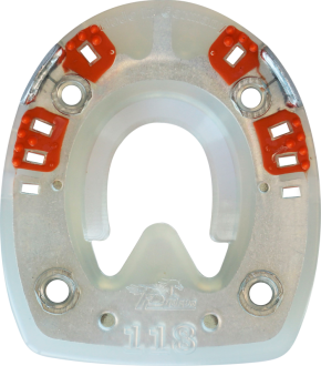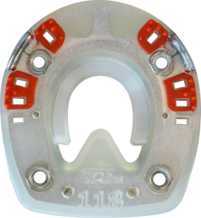 The unique feature of this horseshoe is its shock-absorbing plastic coating, which is especially beneficial in disciplines like show jumping, eventing, or hunting where the horse's locomotor system is subjected to high levels of stress.